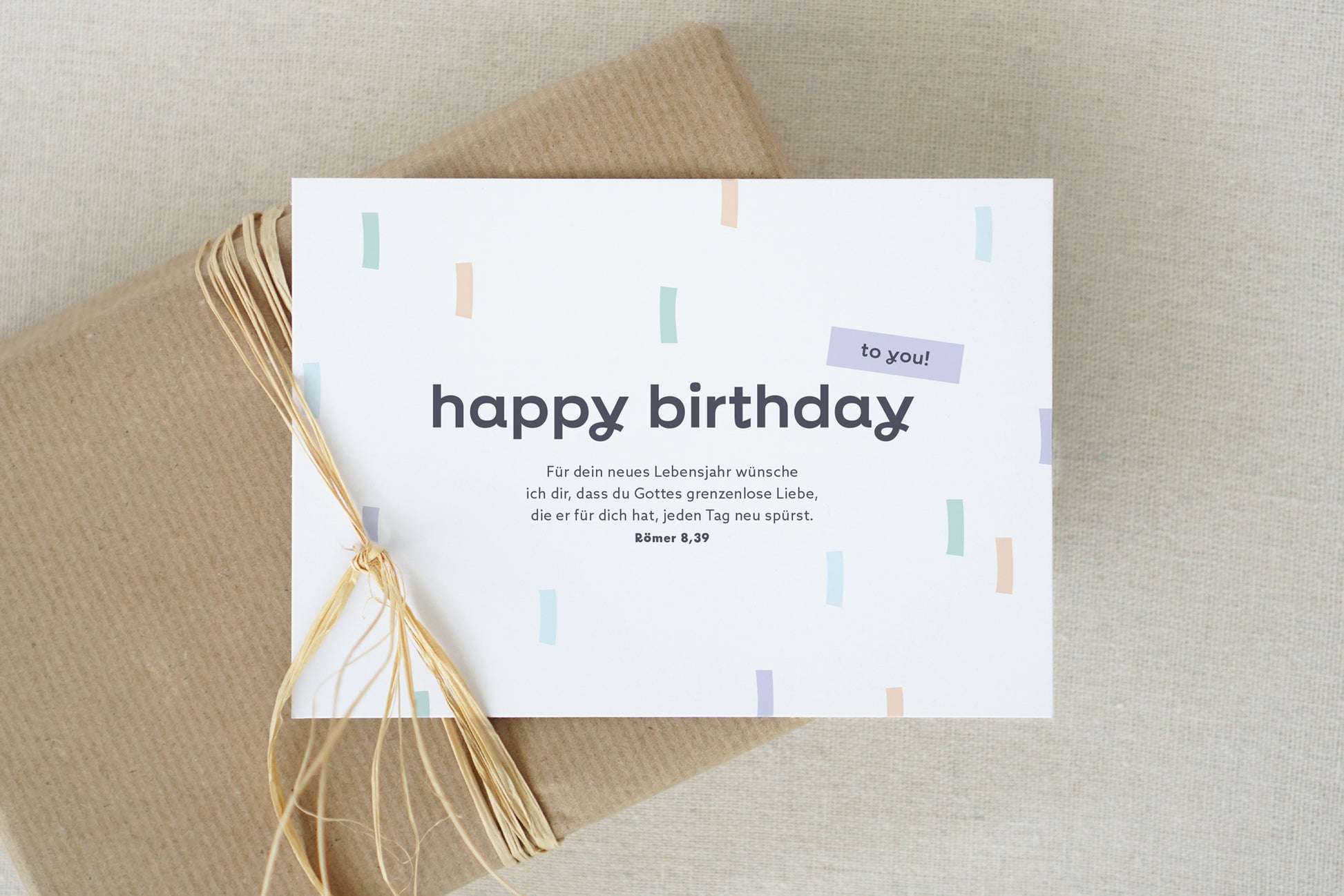 Christliche Geburtstagskarte: Happy Birthday to you! Für dein neues Lebensjahr wünsche ich dir, dass du Gottes grenzenlose Liebe, die er für dich hat, jeden Tag neu spürst. (Römer 8,39)