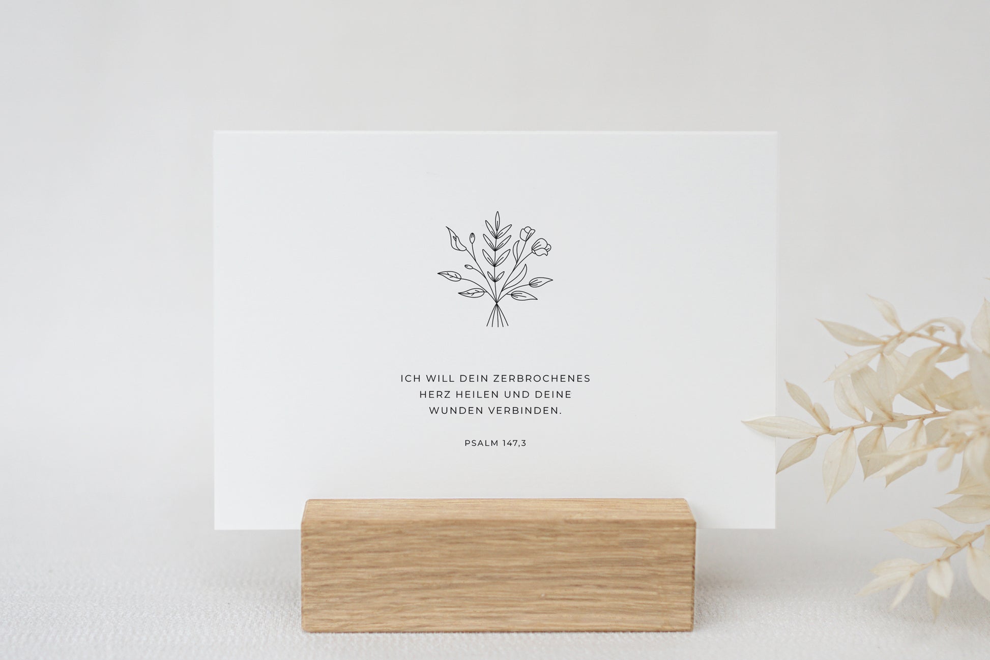 Trauerkarte "Ich will dein zerbrochenes Herz heilen und deine Wunden verbinden" nach Psalm 147,3