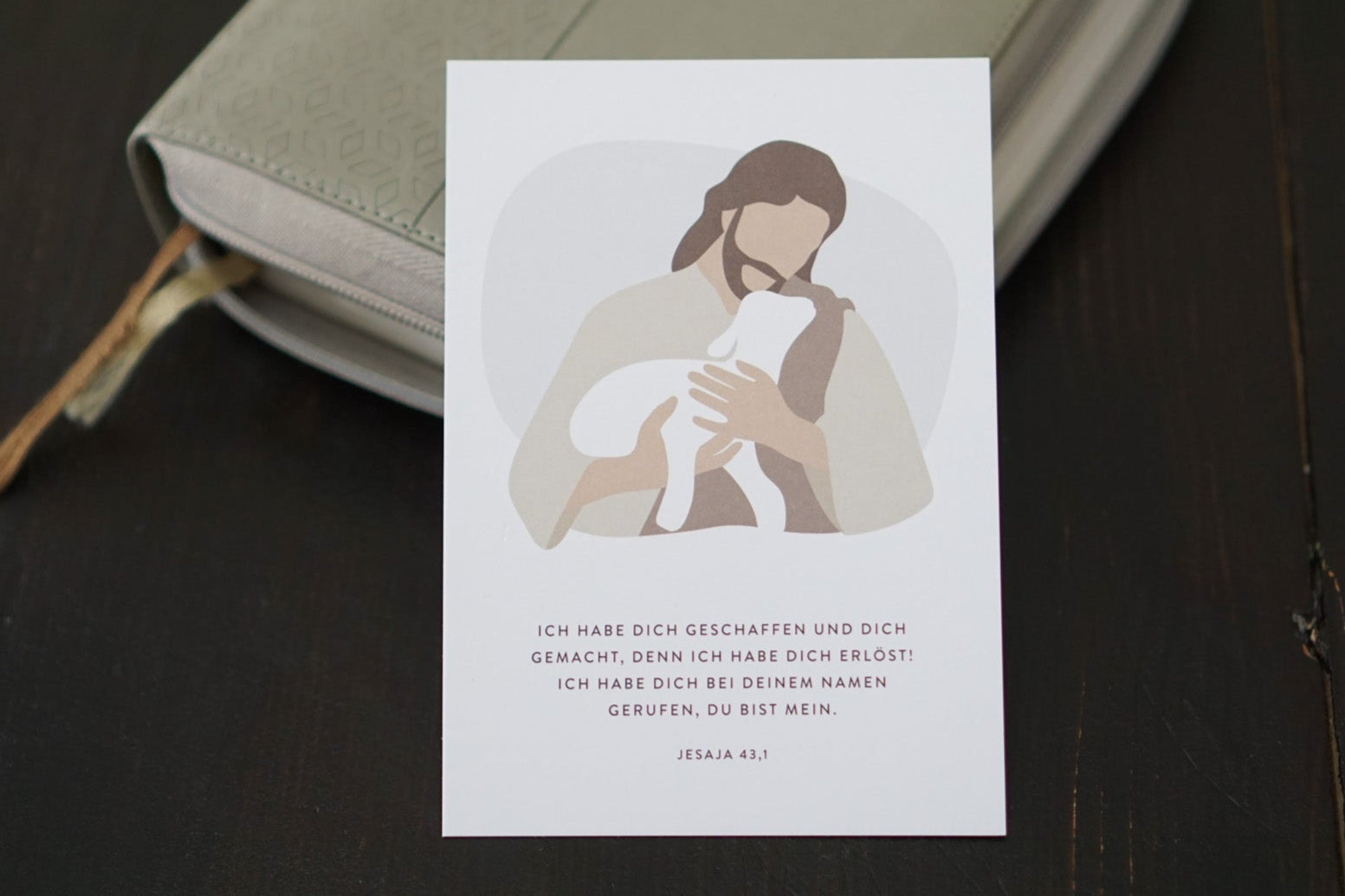 Diese Karte aus der Serie “Der gute Hirte” erinnert dich daran, dass Gott dein guter Hirte sein möchte, der an deiner Seite ist und dich beschützt.