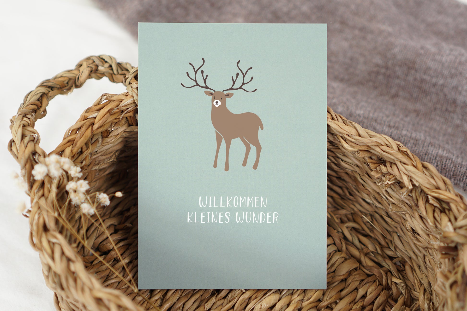 Kleines Wunder – Hirsch: Jede Geburt ist ein Liebesbeweis Gottes und ein echtes, faszinierendes Wunder. Teile diesen Gedanken mit dieser Karte.
