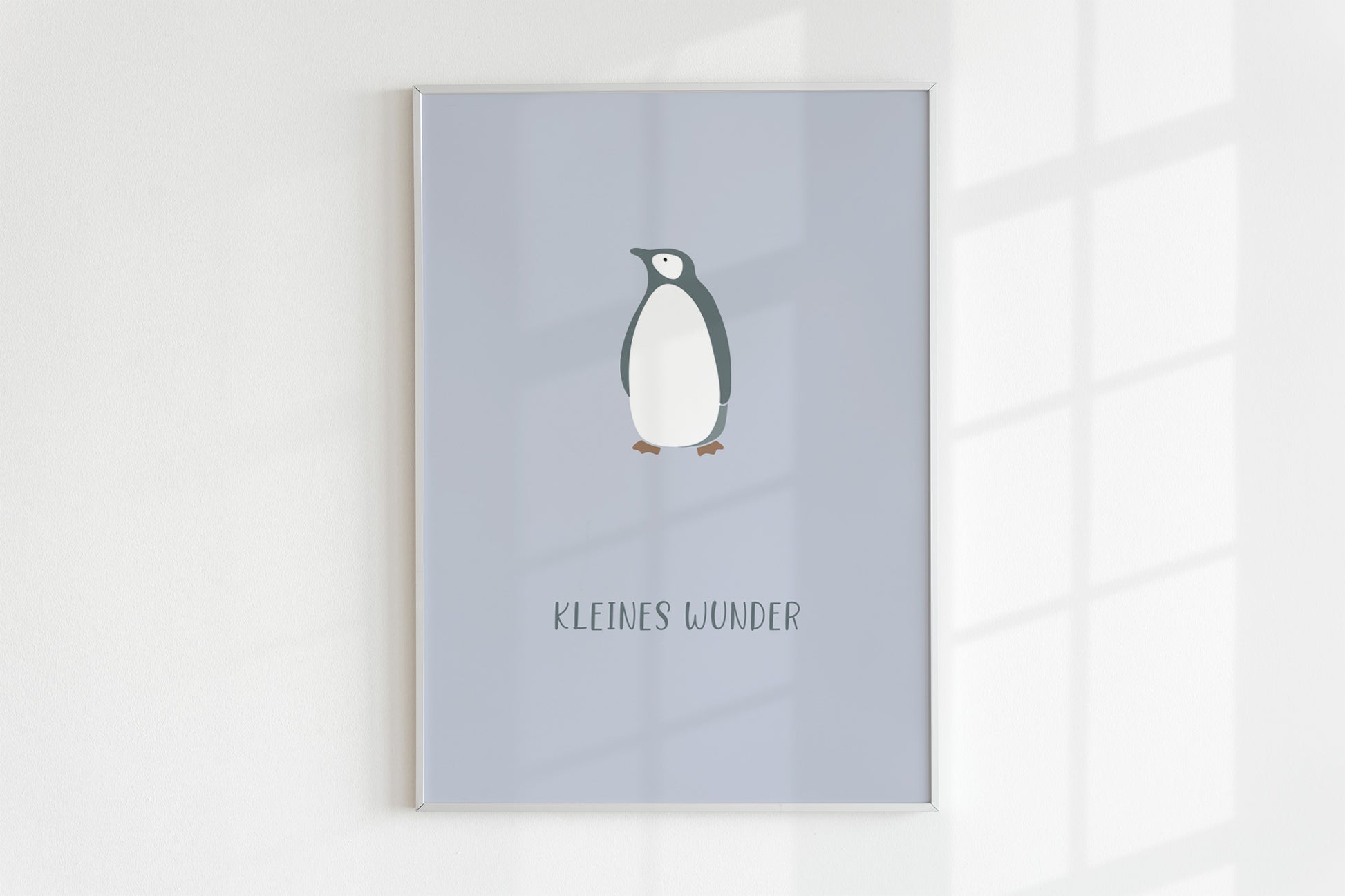 Kleines Wunder (Pinguin): Die Geburt eines Kindes ist und bleibt ein echtes Wunder das Gott schenkt. Daran erinnert dieses schöne Poster für das Kinderzimmer. Dieses hochwertige Poster auf 170 g Papier (ohne Bilderrahmen) ist in den drei Größen A4, A3 und im Kunstdruck-Format 50 × 70 cm bestellbar.