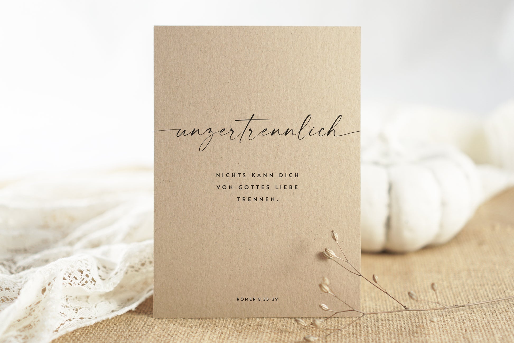 Unerschütterliche Verheißungen auf starkem Papier. Diese Karte ist eine wundervolle Erinnerung an Gottes unendliche Liebe zu uns. Wir sind ihm unzertrennlich verbunden und nichts kann uns von seiner Liebe trennen. Diese Karte ist ein schönes Geschenk für Menschen, die dir am Herzen liegen.